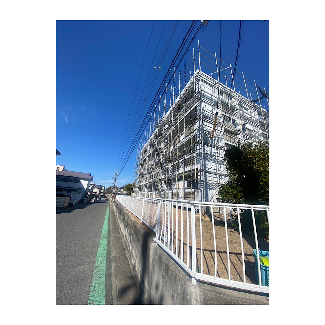 岐阜県郡上市でマンションの外壁改修工事のための足場組み立て工事を行いました。