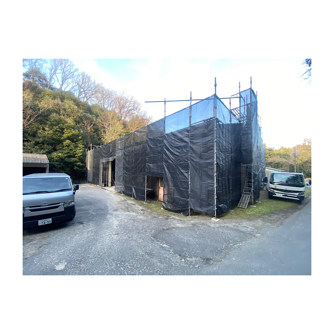 三重県いなべ市で倉庫の外壁改修工事工事のための足場組み立て工事を行いました。