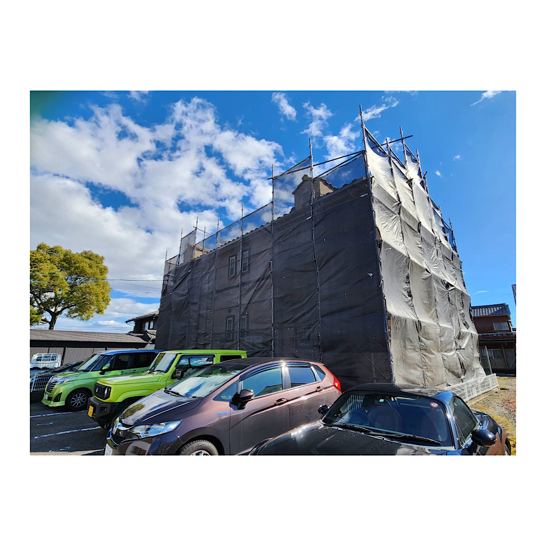 岐阜県多治見市でアパートの外壁リフォーム工事のための足場組み立て工事を行いました。