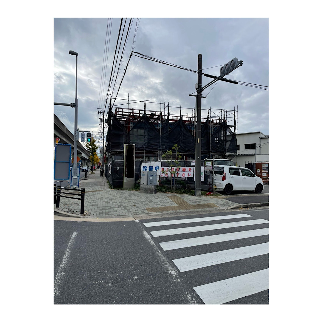 新築戸建て外壁リフォーム工事 新築防水工事 新築シーリング工事 新築外壁塗装工事 新築仮設工事 新築昇降階段 新築ステージ足場 メッシュシート 増築工事 先行足場