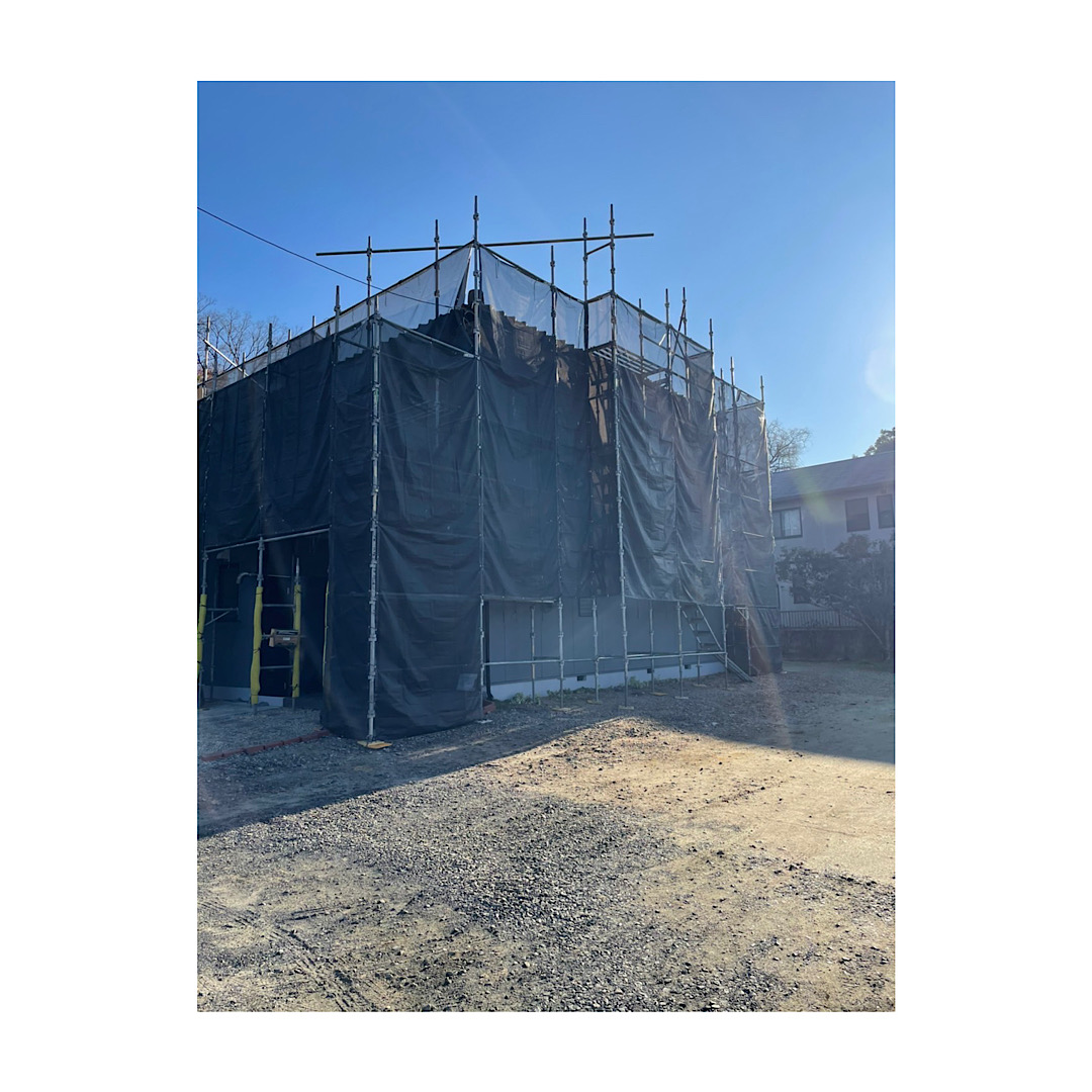 愛知県美浜町で住宅の屋根漆喰工事のための足場組み立て工事を行いました👷